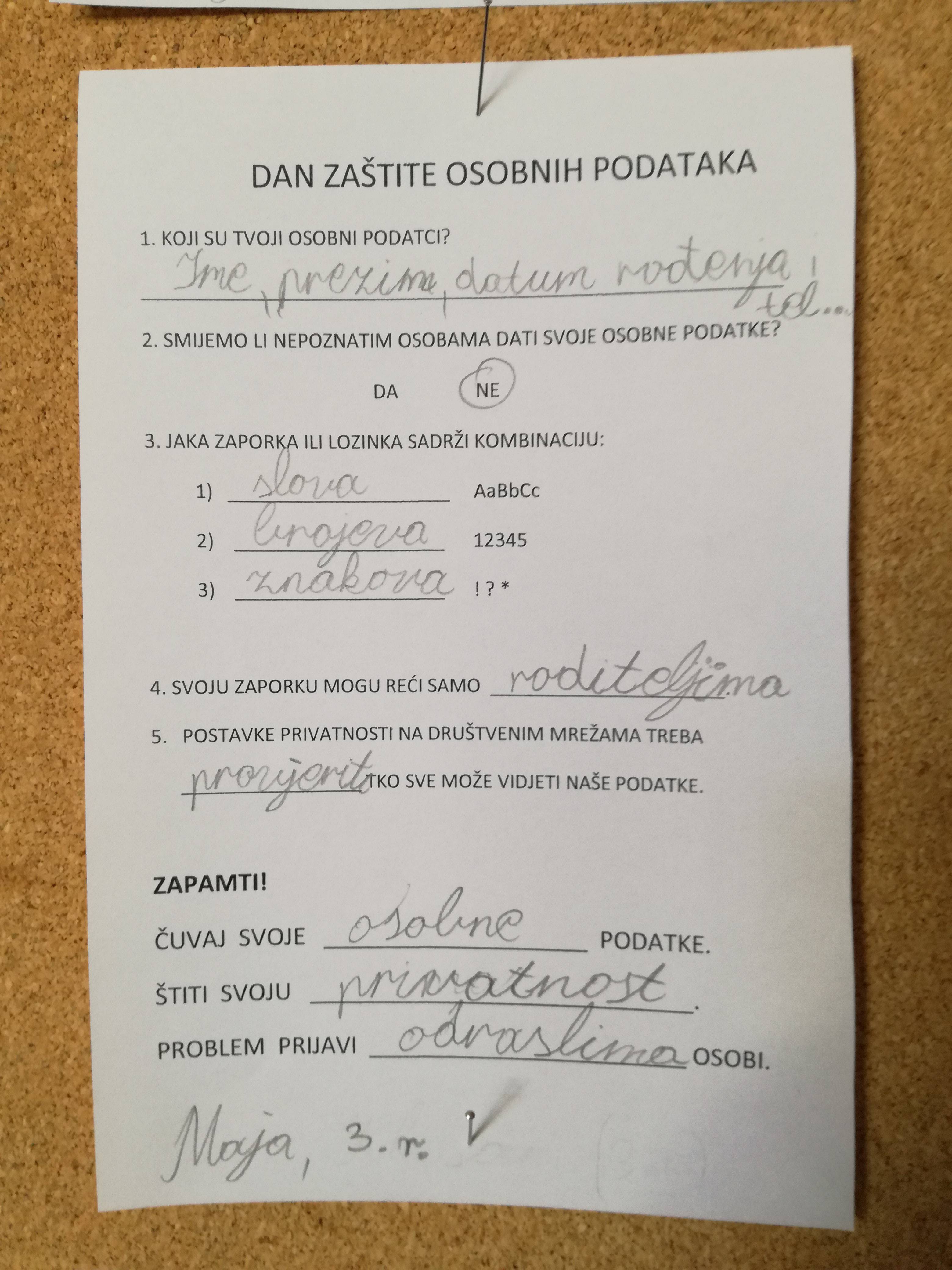 Učenici su osmislili i izradili plakat povodom obilježavanja Dana zaštite osobnih podataka. Stripovima su prikazali kako zaštititi svoju privatnost i čuvati osobne podatke.