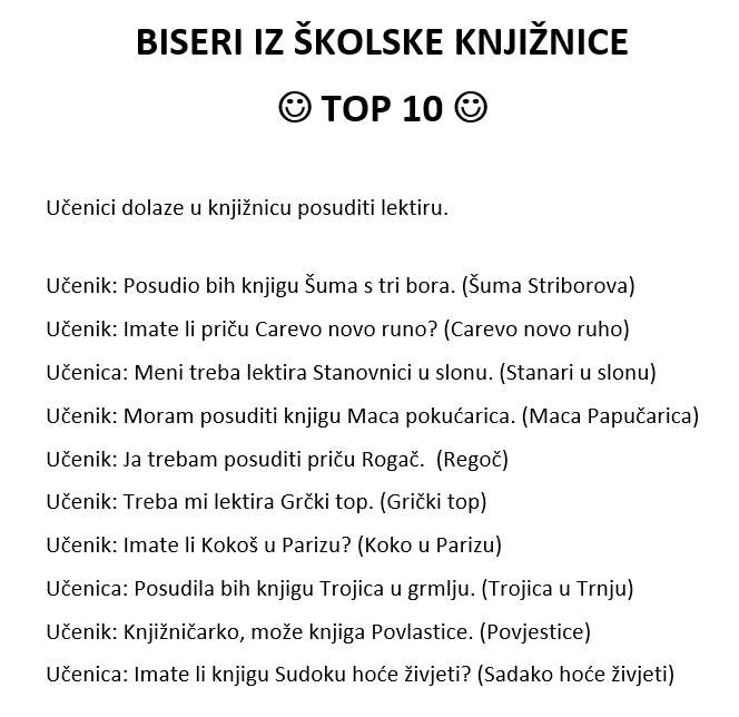 Izabrali smo i top 10 najboljih bisera iz školske knjižnice i dobro se nasmijali.